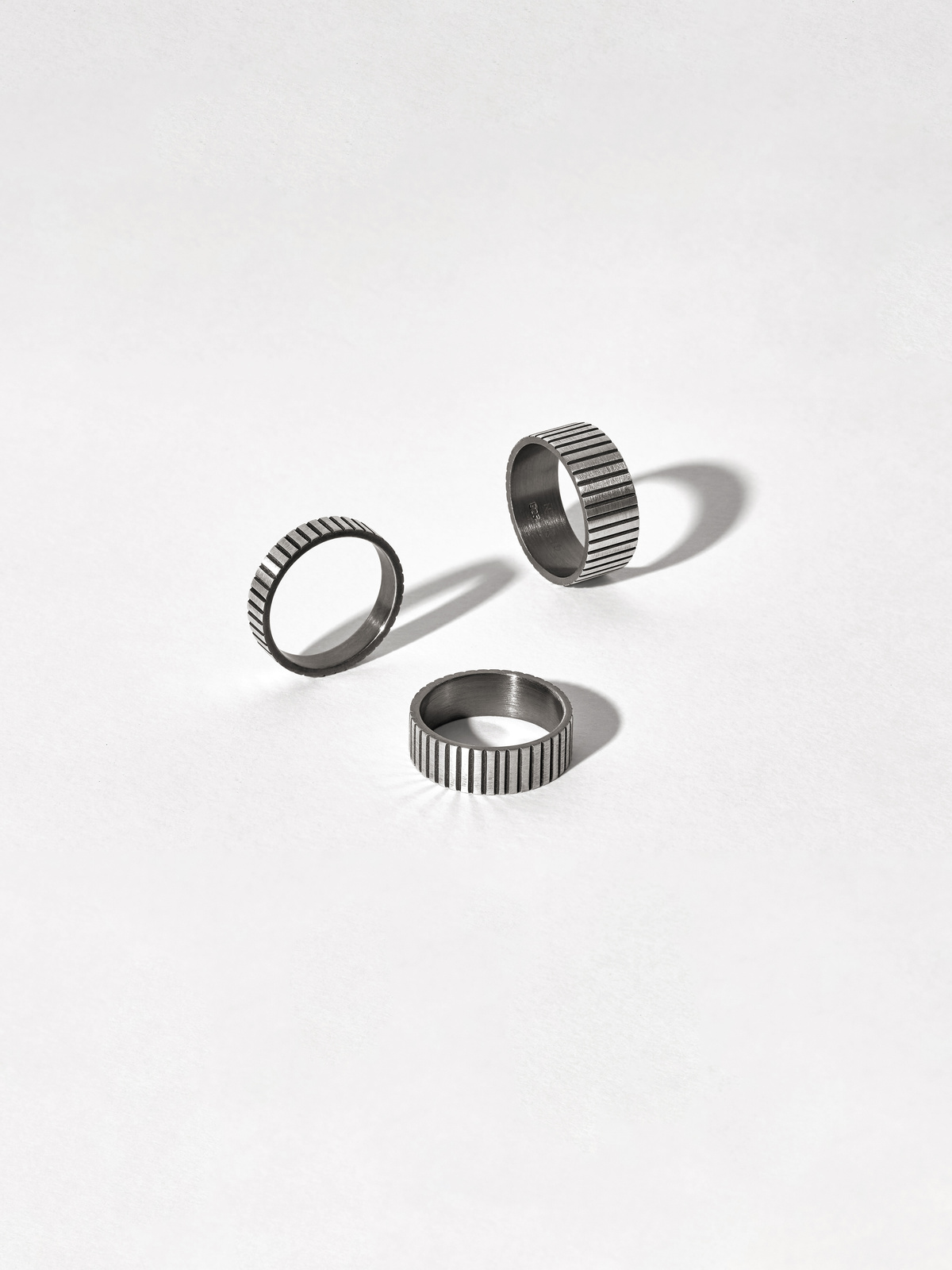 - Minimalist ring with linear detail of rhythmic cuts.